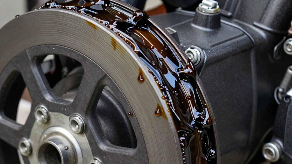 Using diesel oil with high viscosity can cause clutch slip over time, affecting your motorcycle’s performance. Diesel oils are thicker and may not flow as easily through the clutch system, leading to increased wear and potential slipping. Over prolonged use, this can reduce clutch responsiveness and lifespan. It’s best to stick with recommended motorcycle oils to guarantee proper lubrication and smooth operation, avoiding issues caused by incompatible oil viscosity.