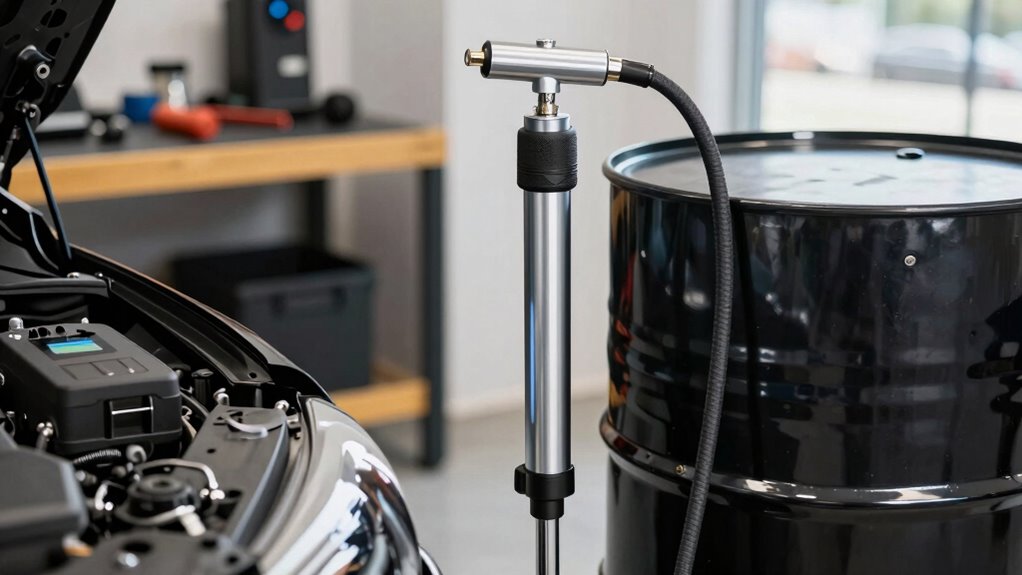 A portable electric drum pump with self-priming technology makes fluid transfer effortless, especially when working in tight or remote spaces. Its compact, lightweight design allows me to easily move it wherever needed, whether in a garage or on-site. It’s perfect for extracting engine fluids from various barrel sizes and types, ensuring versatility for different vehicles. The self-priming feature speeds up the process, making fluid drawing quick and safe. Plus, its simple handling promotes efficient maintenance routines, helping keep engines in top shape. Overall, this pump combines portability, ease of use, and reliability, making it an essential tool for fluid transfer tasks.