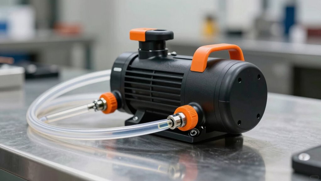 Think of portable pumps as versatile dancers—they can handle many types of hydraulic oils. Yes, they can manage high-viscosity oils, but performance depends on the pump’s design and power. I’ve seen well-built models tackle thick fluids smoothly, but if the oil’s too sticky, it might strain the pump or reduce efficiency. Choosing the right portable pump guarantees your hydraulic system keeps flowing without missing a beat.