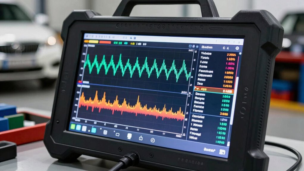When selecting a scan tool with live data graphing, it’s important to contemplate the range of diagnostic functions it offers. A thorough device should support multiple vehicle systems like engine, transmission, ABS, and SRS, enabling detailed diagnostics across various components. It must handle real-time monitoring of multiple data streams simultaneously—typically up to eight or more PIDs—to capture complex interactions. Compatibility with different OBDII protocols like CAN, KWP2000, ISO9141, and J1850 ensures it works with a wide range of vehicles, providing reliable data collection. Advanced features like waveform merging, multi-graph displays, freeze frame capture, fault code interpretation, and live sensor data greatly improve troubleshooting accuracy. These capabilities make the tool versatile and effective for detailed vehicle analysis.