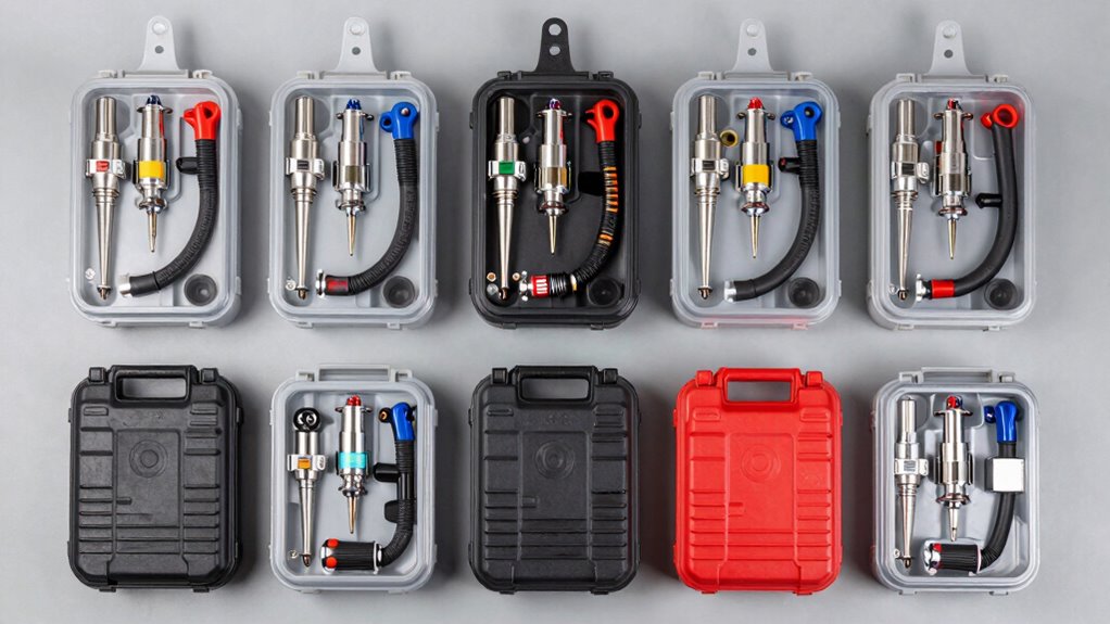 When selecting a sealed transmission fill tool kit, durability and build quality are crucial for guaranteeing long-lasting performance. High-quality kits are crafted from durable materials like aluminum alloys or corrosion-resistant metals, which can withstand high pressure and harsh environments. Precise threading and leak-proof connections are essential to prevent fluid leaks and ensure secure fitting during use. Reinforced joints and robust construction help the tools resist breakage or deformation over time, even under demanding conditions. Additionally, corrosion-resistant surfaces and protective coatings safeguard against rust and chemical damage from transmission fluids. A well-made kit maintains its accuracy and integrity after repeated use, providing consistent performance. Investing in durable tools means fewer replacements and repairs, ultimately saving time and money in the long run.