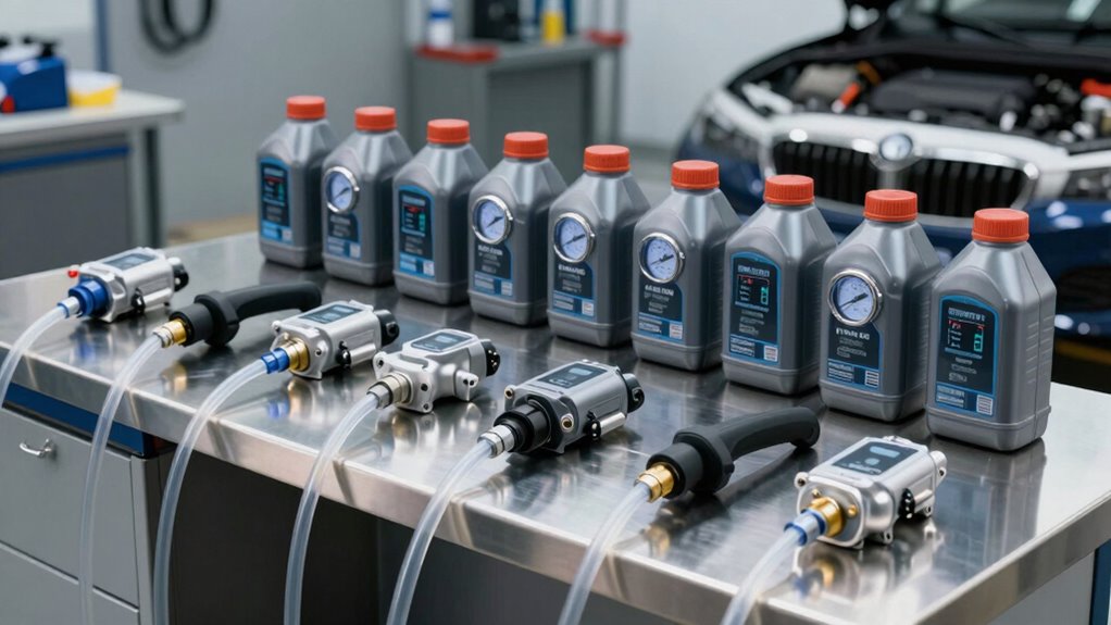 Ease of use is a crucial factor when selecting a transmission fluid evacuation and refill kit, as it directly impacts the efficiency and safety of the task. I look for kits with intuitive controls, like dual-way valves and trigger locks, that let me switch smoothly between extraction and refill modes. Clear pressure gauges and preset safety valves are essential to help me monitor pressure and avoid overpressure mishaps. I prioritize systems that are easy to assemble and disassemble, saving me time and effort during setup and cleanup. Labels on adapters and hoses simplify connections, reducing mistakes and frustration. Additionally, ergonomic features such as built-in handles and organized storage cases make handling more comfortable and convenient, ensuring I can work efficiently without unnecessary strain.